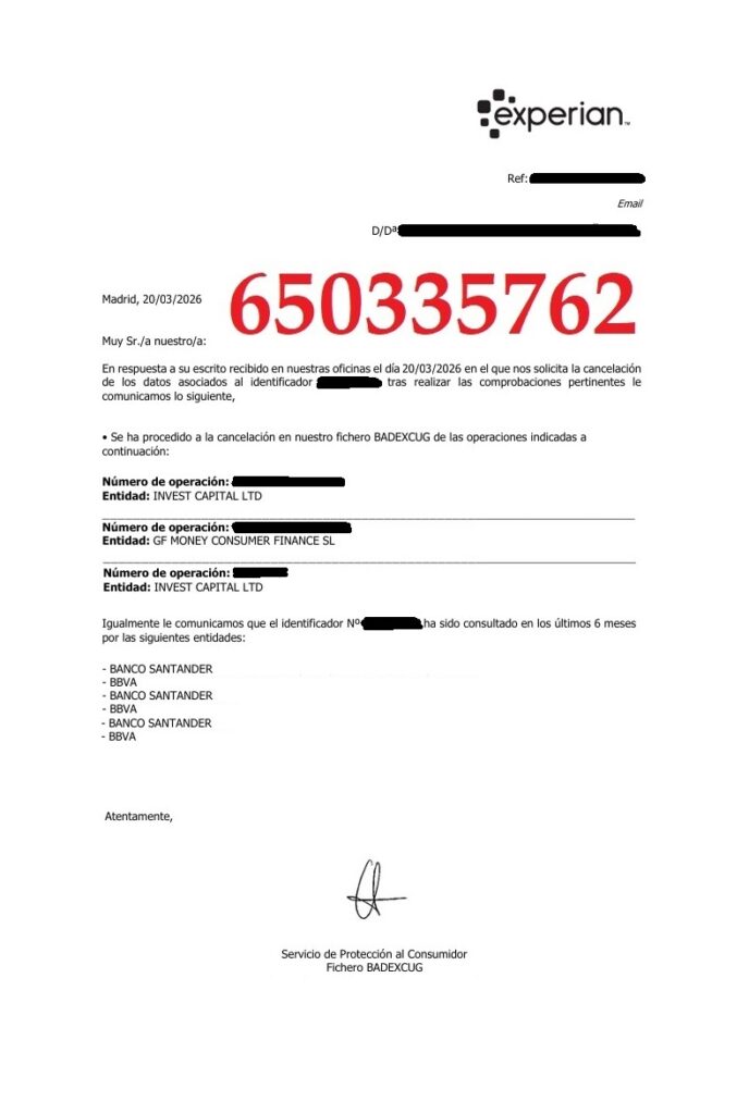 En conclusi贸n, llame y solucione su problema de impago saliendo sin pagar de los ficheros de morosos ASNEF EQUIFAX y EXPERIAN BADEXCUG. No depende de lo que digan sino obviamente de todas y cada una de las deudas de cara a discutir deudas con el茅ctricas, telef贸nicas y bancarias.
